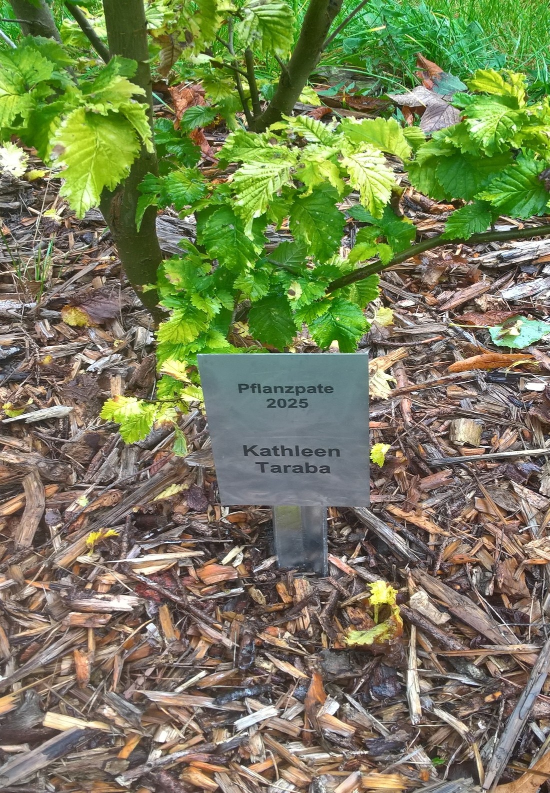 Gut sichtbare Pflanzpatenschilder würdigen die einzelnen Pflanzpaten von Starkbäumen, von Blühsträucher und von Heckenpflanzen